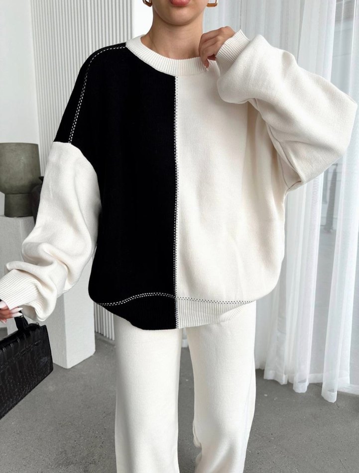 Siyah Beyaz Oversize Triko Kadın Kazak