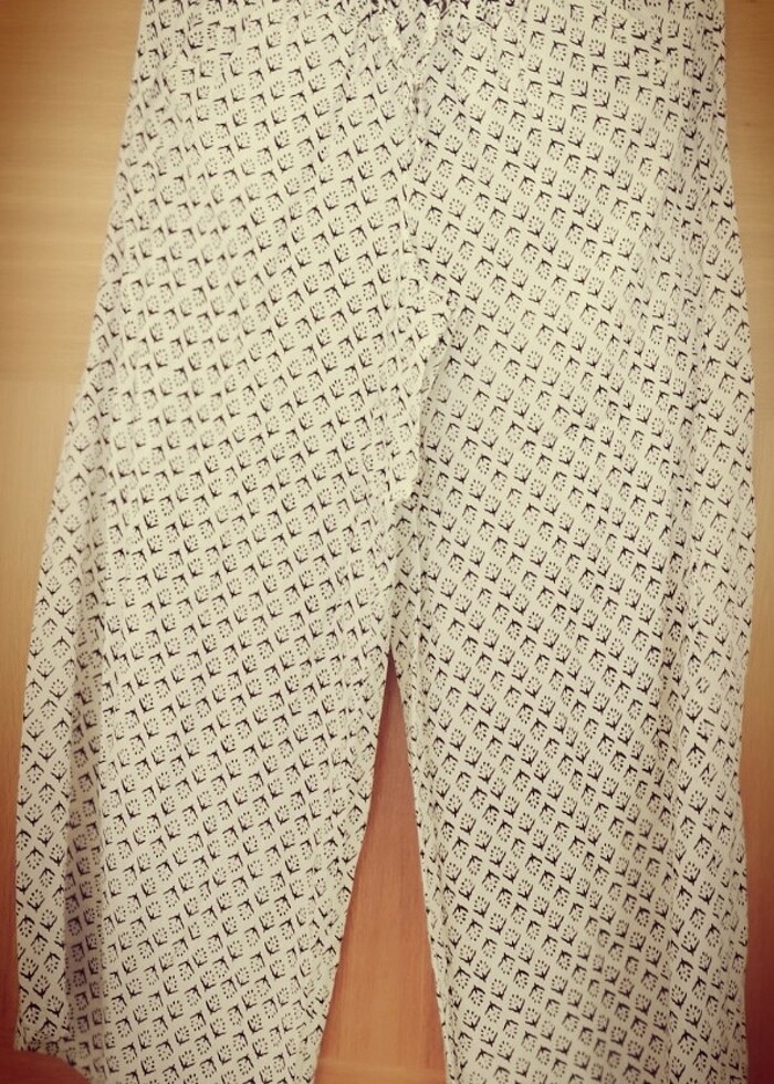 Siyah beyaz M beden desenli geniş paça pantolon