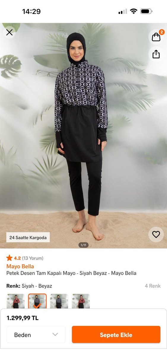 Uzun boy, bol kesim, uzun kollu, siyah beyaz petek deseniyle tam kapalı mayo. Günlük kullanım için rahat ve şık bir model. ♀️ürün küçük geldigi ve değişim olmadığı için satıyorum ve baya uyguna veriyorum indirimde 1300 e aldım mayobella marka