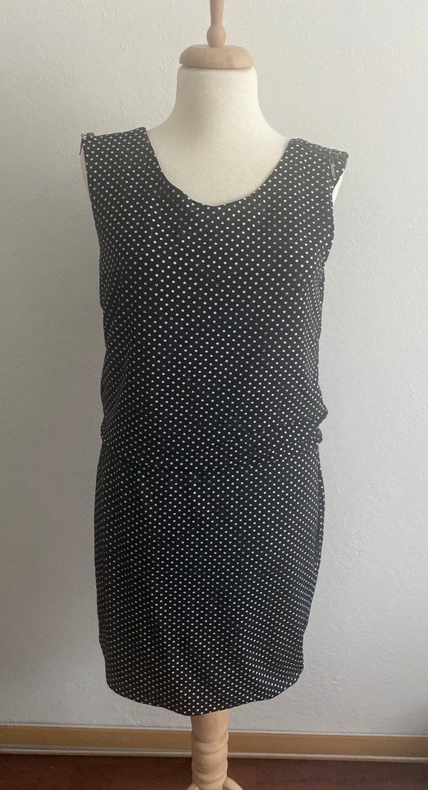 Siyah Beyaz Puantiye Desenli Midi Elbise