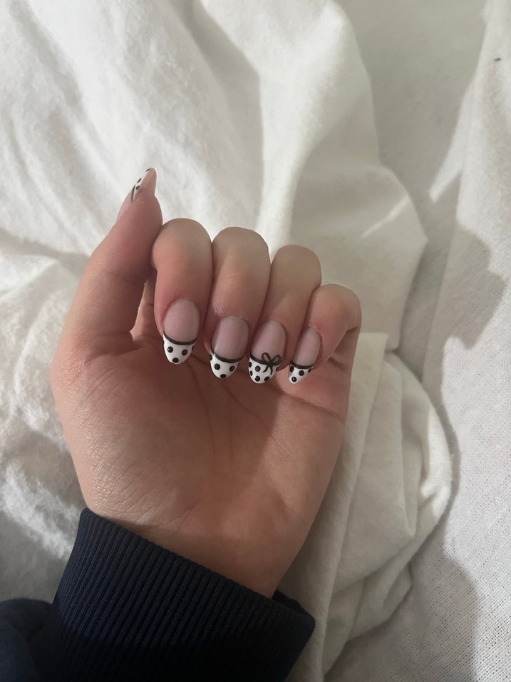 Siyah Beyaz Puantiyeli Jel Takma Tırnak Tırnak