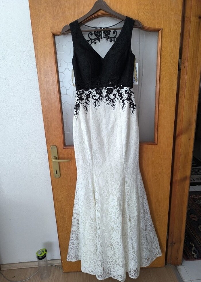 Siyah beyaz şık gece abiye elbise
