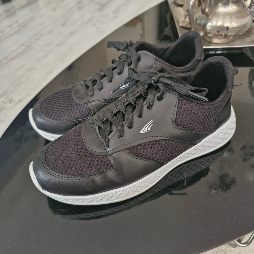 siyah beyaz tabanli minimalist kadın spor ayakkabısı, lastik tabanlı ve stiletto topuklu, trend sokak stiline uygun ve günlük kullanıma ideal. Desensiz, sade şıklık sunar. BIR KAC DEFA KULLANILDI GENELDE YUKSEK TABANLI GIYDIGIM ICIN PEK ALISAMADIM EGER KARGO BEDELİNİ KUCUK ISTERSENIZ KARGO BOYUTUNU KUCUK YAPARIM TERCİH SİZİN