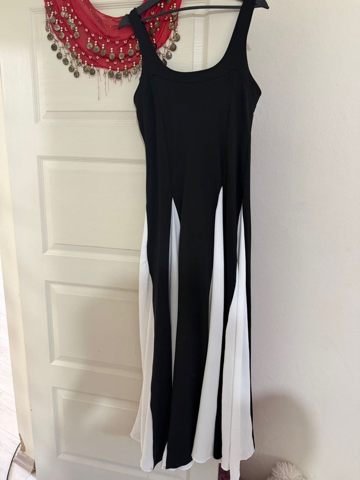 Siyah Beyaz Uzun Askısız Elbise