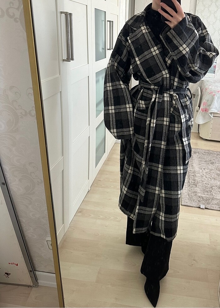 Siyah Beyaz Uzun Kaban Desenli