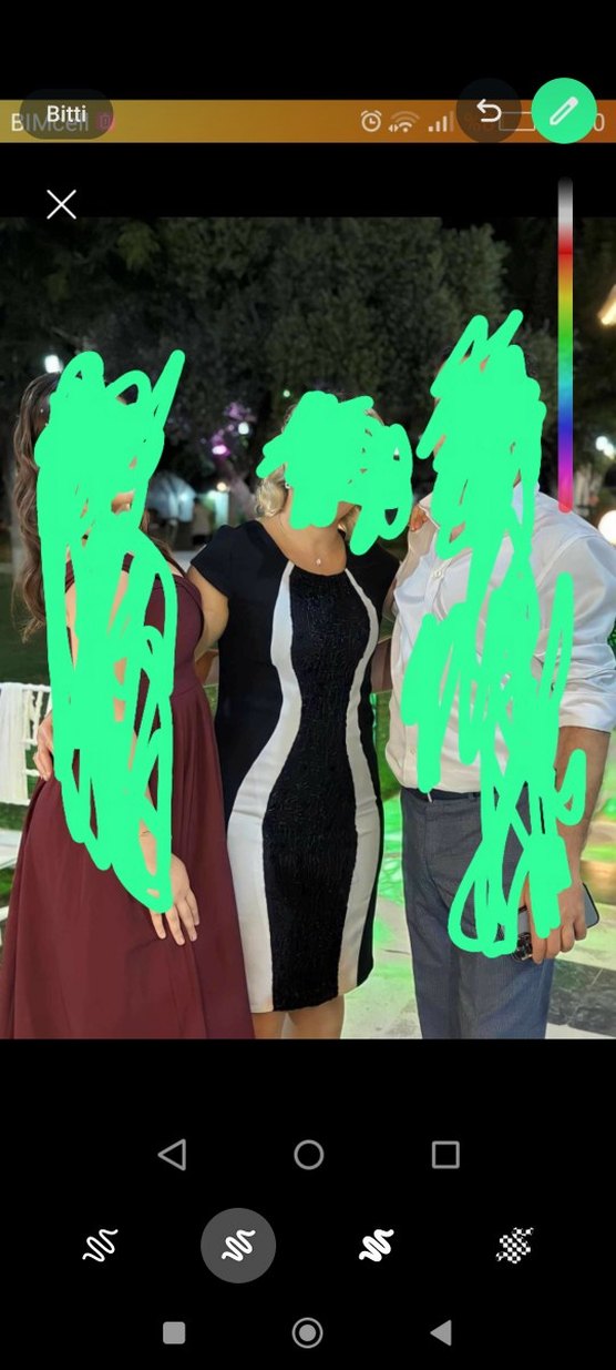 Siyah Beyaz V Yaka Uzun Abiye Elbise