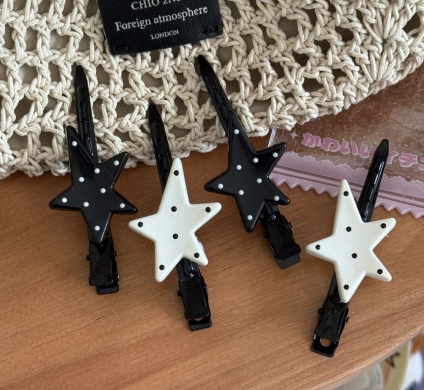 Siyah-Beyaz Yıldızlı saç tokaları