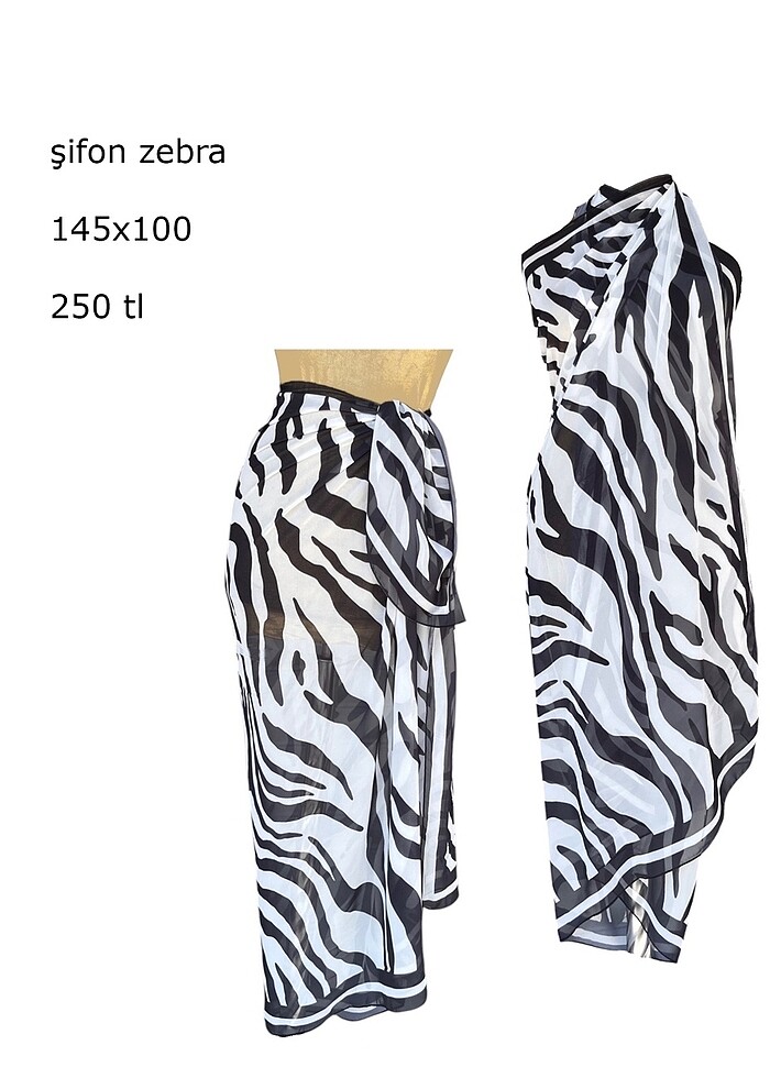 Siyah Beyaz Zebra Desen Şifon Pareo 145 x 100