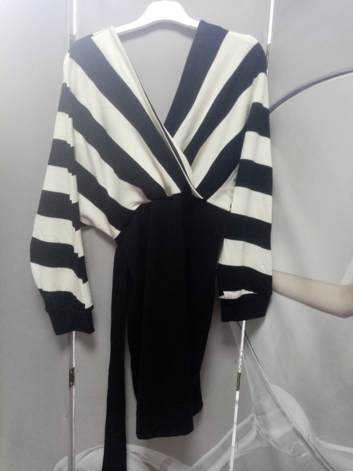 Siyah Beyaz Zebra Desenli Kemerli Mini Kazak li elbıse