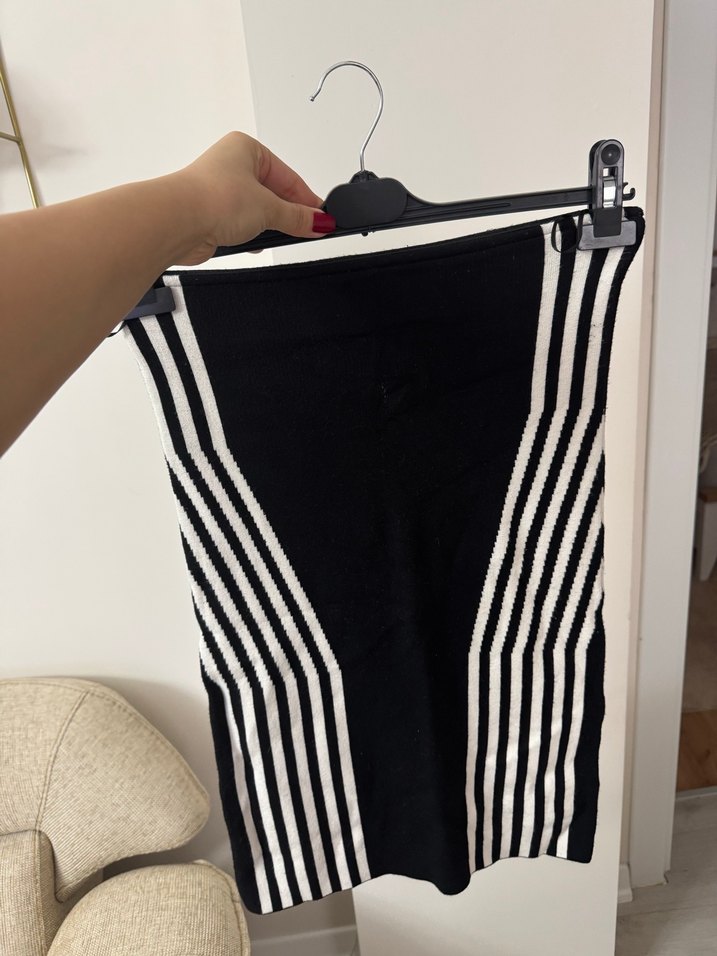 Siyah beyaz zebra desenli, elastik belli, midi boy, sokak modasına uygun etek Günlük kullanıma uygundur. Yumuşacık sadece çekimde giyildi temiz yepisyeni