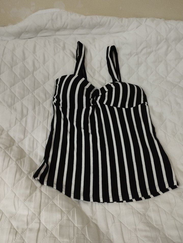 Siyah renkte, zebra desenli, pileli ve midi boyda, kolsuz, vücuda oturan bir mayo. Günlük sokak stiline uygun cesur bir seçim.