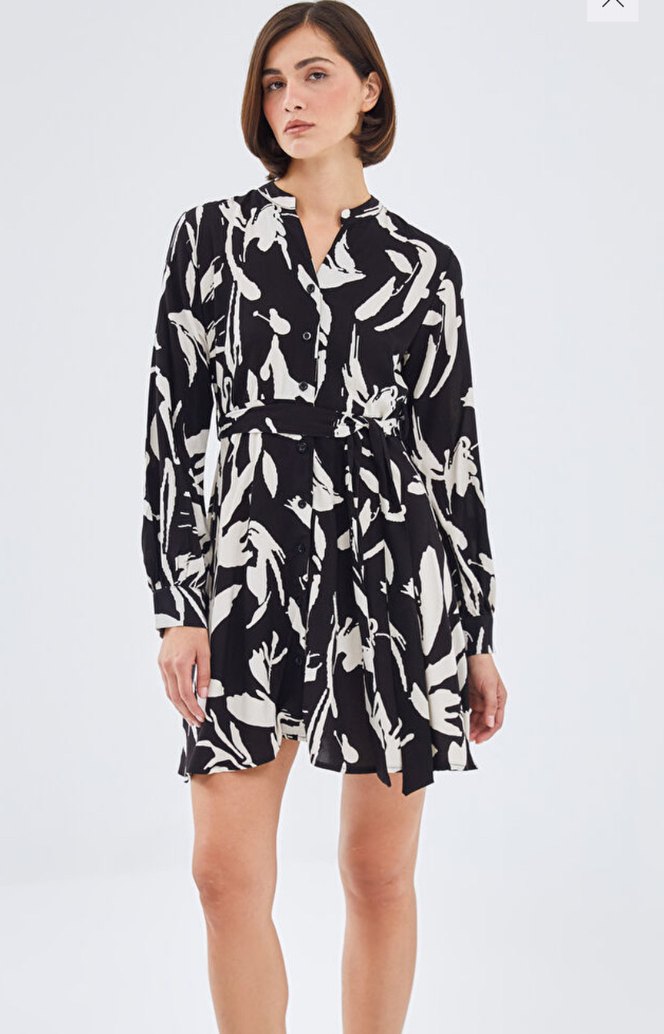 Siyah Beyaz Zebra Desenli Mini Elbise