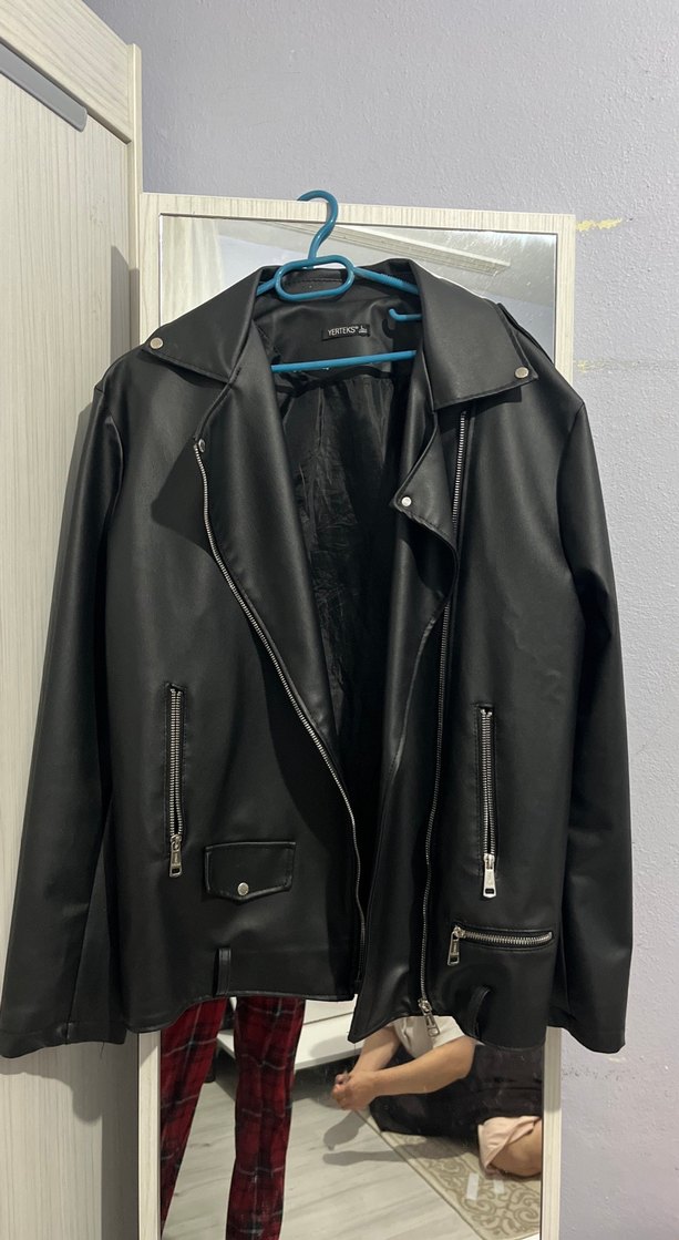 Siyah, biker tarzı kadın deri ceketi, notched yaka ve fermuarlı ceplerle günlük sokak stili için uygun. Bi tane cebin astarı yırtık