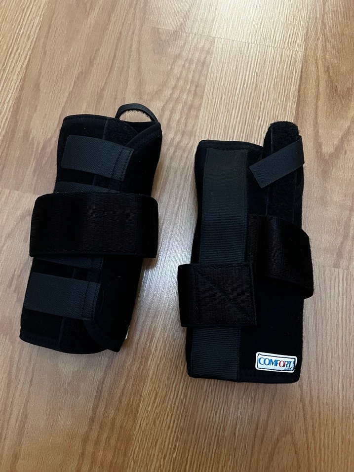 Velcro bantlı, siyah biker tarzı el koruyucu. İç kısmı yumuşak ve sıcak tutan kumaşla kaplıdır. COMFORE etiketi bulunur. ️