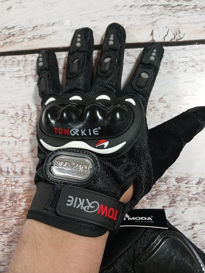 Koruyucu eklem kapaklı, baskılı siyah biker erkek eldiveni. TOWRKIE ve PMODA marka, grunge punk tarzına uygun.