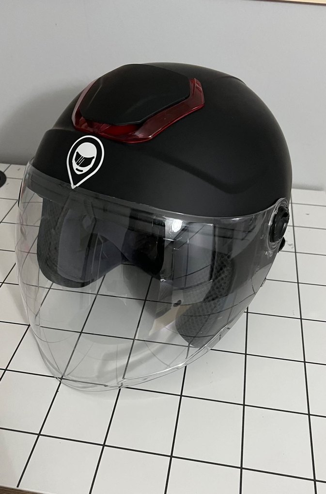 Koyu siyah plastikten yapılmış, baskılı desenli ve şeffaf vizörlü biker motosiklet kaskı, rock punk havası taşır. ️ Freeman marka