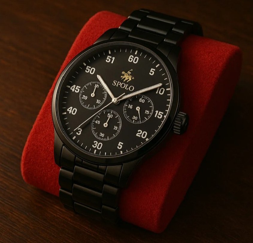 SPOLO markalı klasik biker tarzı siyah erkek saat, çoklu alt kadranlı detaylı kadran ve sağlam metal bilezik içerir kaliteli ve bir o kadarda uzun süreli bir kulanıma sahiptir temiz kulanıldığı sürece bi pil almanız yeterli