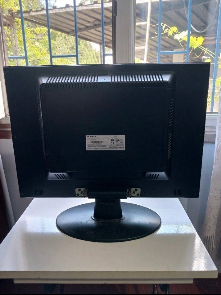 Masaüstü kullanım için yuvarlak tabanlı siyah bilgisayar monitörü. Mat yüzeye ve kompakt tasarıma sahiptir. ️