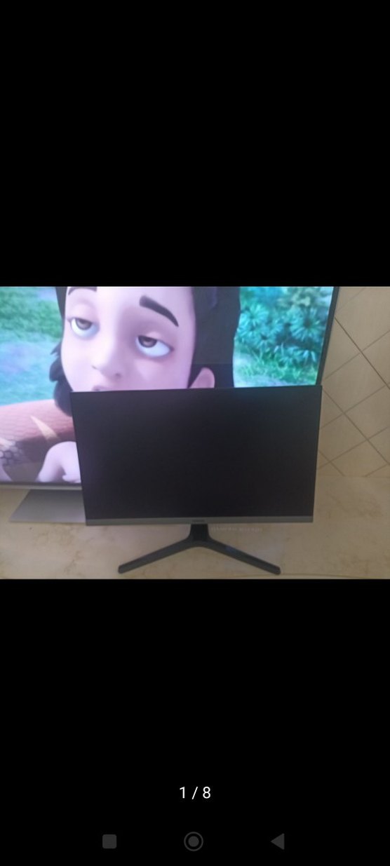 Siyah bilgisayar monitörü, ince tasarım ve sağlam ayak yapısına sahiptir. Masaüstü kullanımı için uygundur. ️