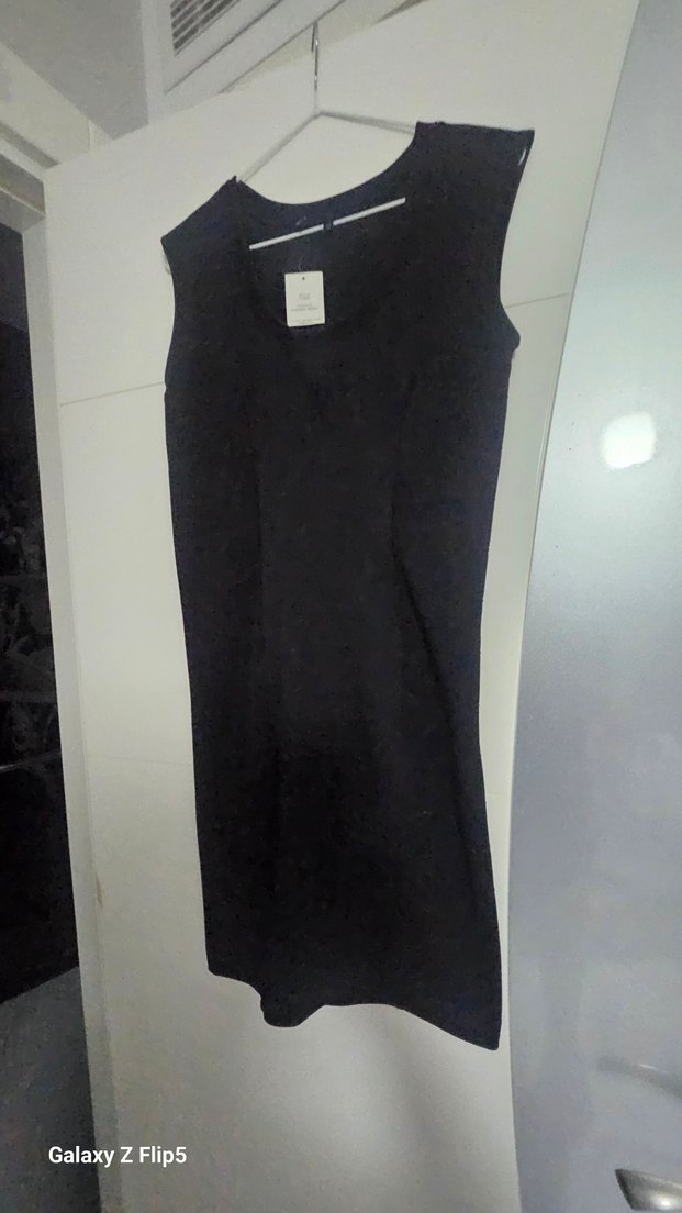 Siyah, kolsuz skuba kumas cok zayif gösteriyor elastik kumaş Minimalist ve şık tasarımı günlük kullanım için uygundur. 2 kol arasi 45 cm