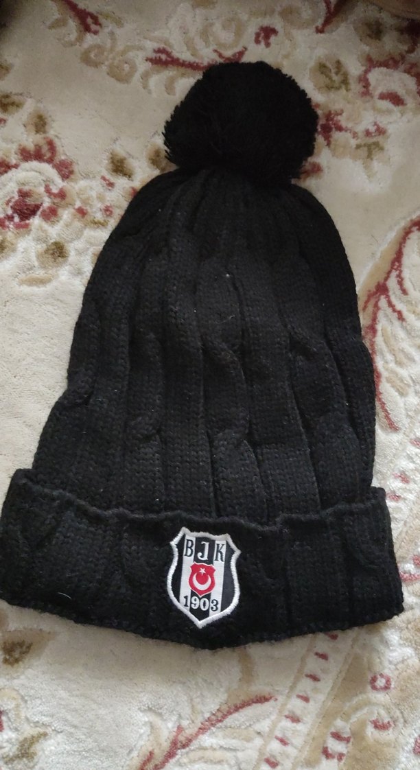 Ponponlu siyah erkek bere, manşetinde BJK 1903 amblemi bulunur. Sıcak tutan ve rahat bir sokak stili şapkasıdır. ❄️