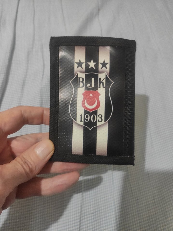 Siyah renkli, BJK amblemi ve 1903 yılı baskılı erkek cüzdanı, sokak stiline uygun biker tarzında.