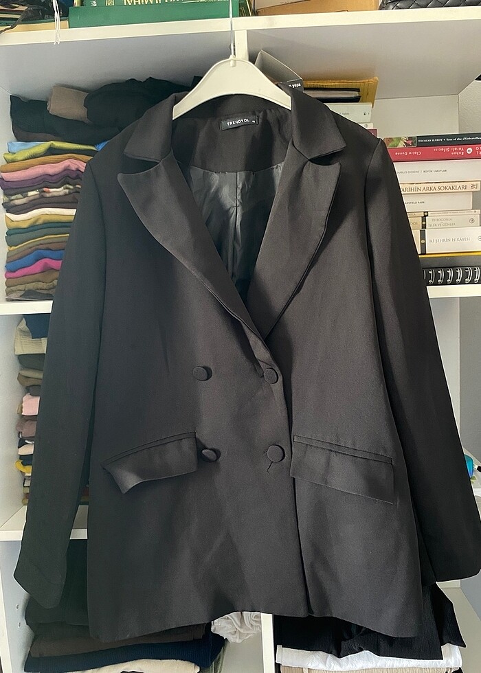 trendyol siyah blazer kalça kapatır