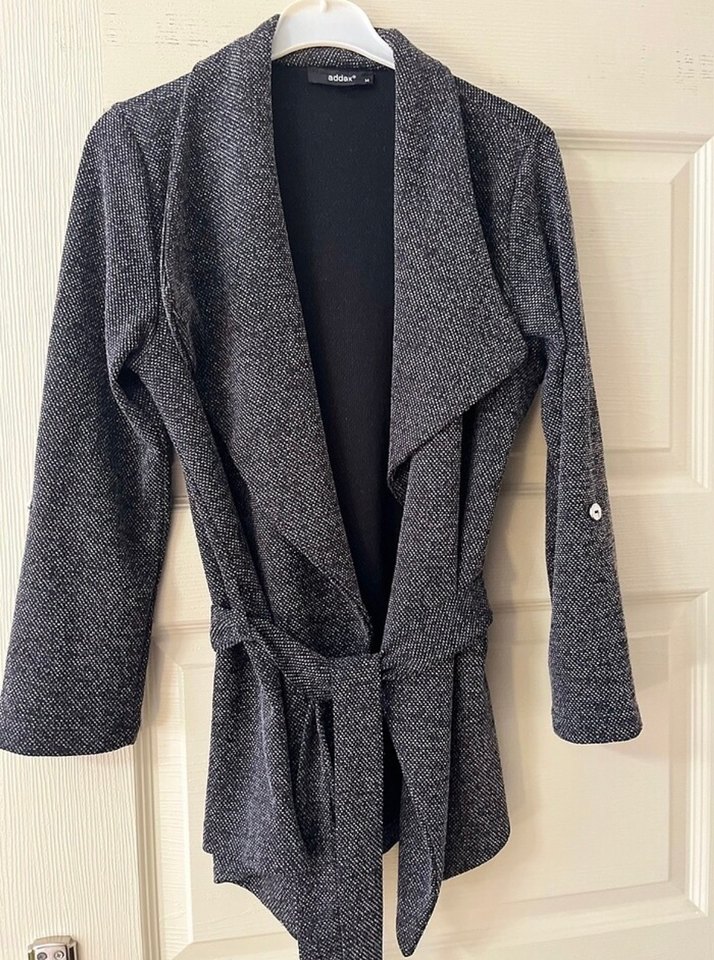 Gri renkli, kemerli ve uzun kollu bu kadın kabanı, yumuşak yün kumaştan üretilmiştir. Normal kesim ve midi boydadır, ofis kullanımı için uygundur.