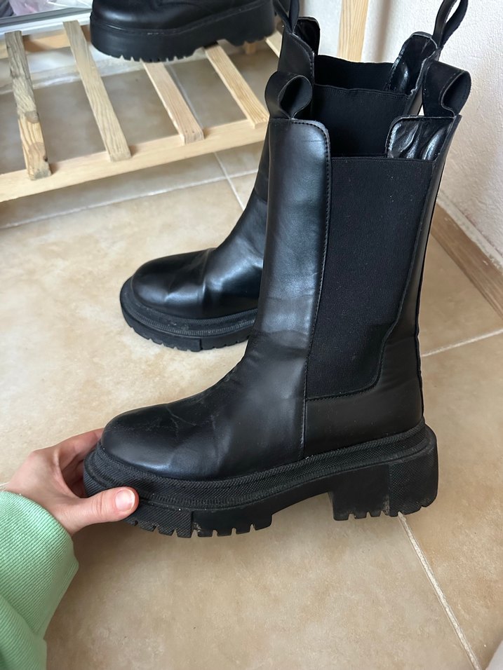 Siyah Blok Topuklu Lastik Bot