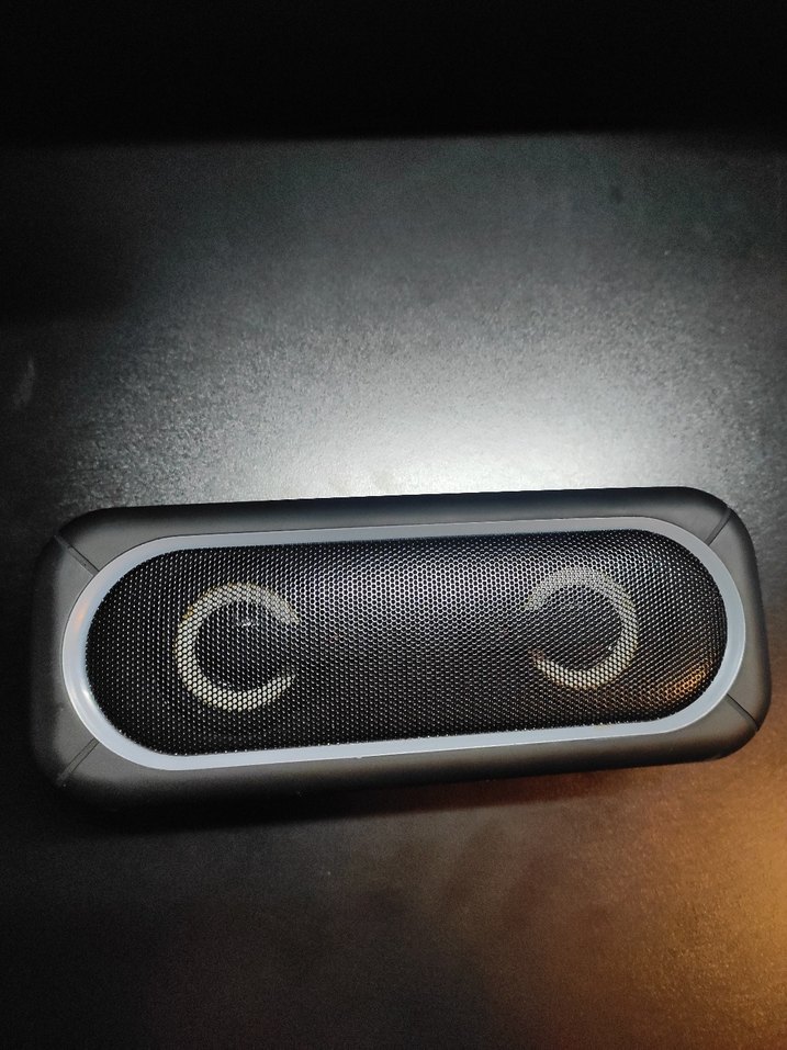 Kompakt tasarımlı ışıklı siyah Bluetooth hoparlör, net ses için çift hoparlör sürücüsüne ve arkasınd mini basa a sahip. Taşınabilir ve kullanımı kolay.yenisi 1500