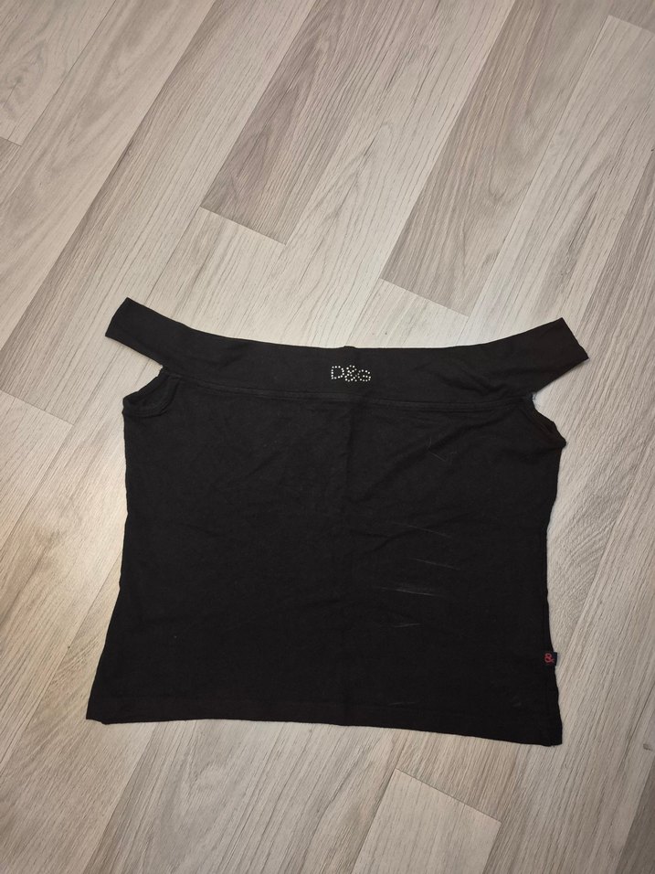 Siyah bluz, kayık yaka. rahat bir tarz sunar. Yakada 'D&G' yazısı bulunur. Günlük kullanıma uygundur.