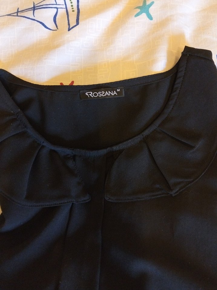 Saten siyah yuvarlak yaka ve fırfır detaylıdır. Marka: Roszana.