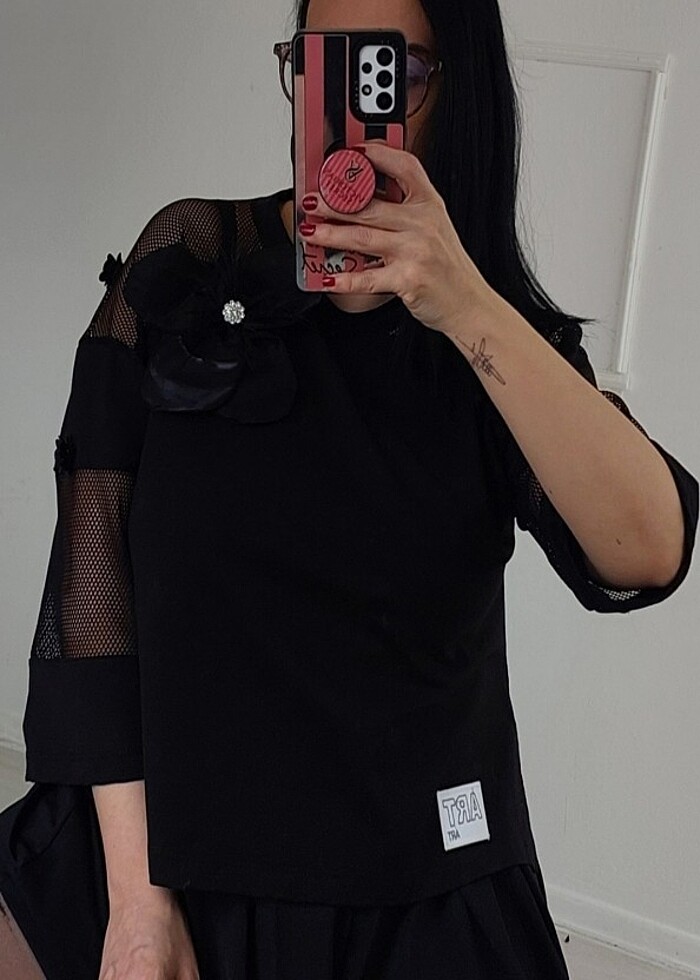 Sweat kumaş omuzlar transparan detay L beden 38 40 uyumlu sıfır #bluz