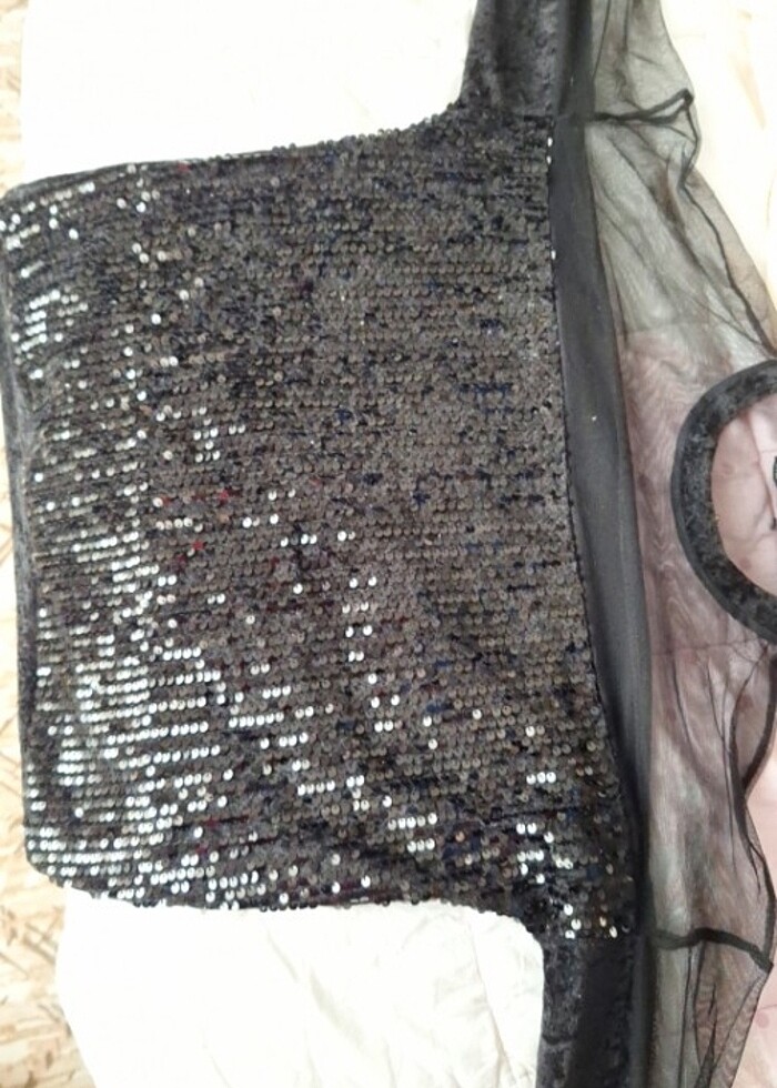 Kusuru yok ihtiyaç fazlası siyah pullu kadife tül omuzları tül sırtı kadife m bedenede uyar l xl