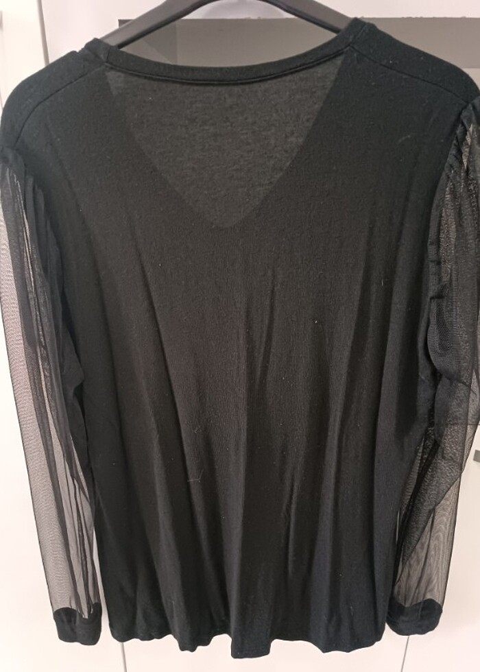 Kolları tül detaylı siyah bluz sadece bir kere giyildi