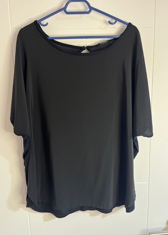 Sırt detaylı siyah bluz. Ürünün hiçbir sorunu yoktur. Üstte hem çok şık hemde spor bir görüntü verir. L beden uyumludur. ( ancak XXL'yede rahatlıkla olur) Duruşu çok şıktır, kolyelerle kombinleyebilirsiniz. Kumaşı ve yapısı kalitelidir. Ayrıca çok rahattır. ✨