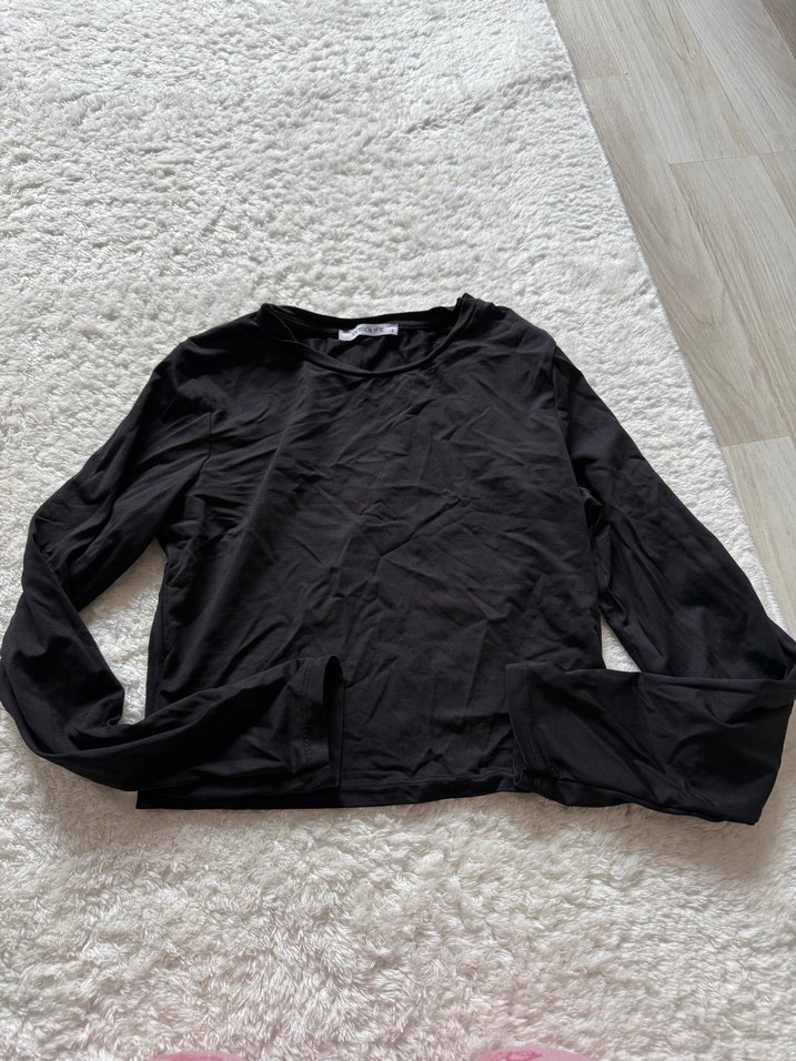 Siyah keten kumaştan, uzun kollu ve yuvarlak yaka olan bu bol kesim bluz, sade ve minimalist tarzda günlük kullanım için uygundur. 1.02 kez kullanılmıştır hiçbir sorunu bir kusuru yoktur