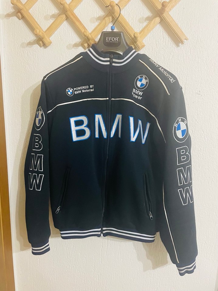 Siyah fitted erkek sweatshirt, uzun kollu ve bisiklet yaka. Fermuarlı cepleri ve baskılı BMW logoları ile spor ve günlük kullanım için uygun. Yer:Bursa