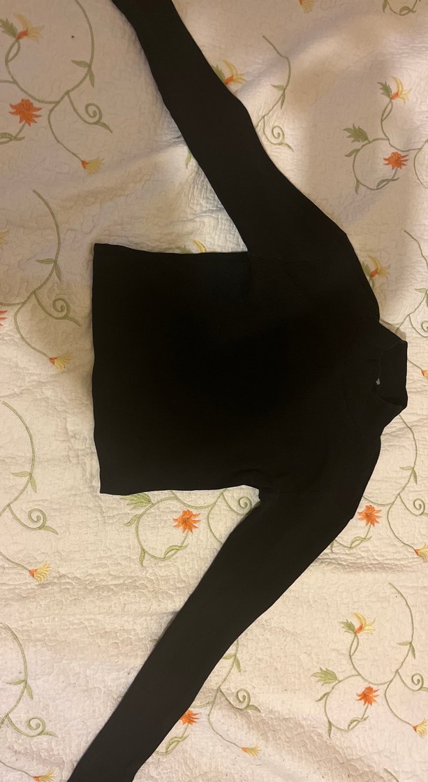Siyah fitilli boğazlı kadın bluz.Uzun kolludur .