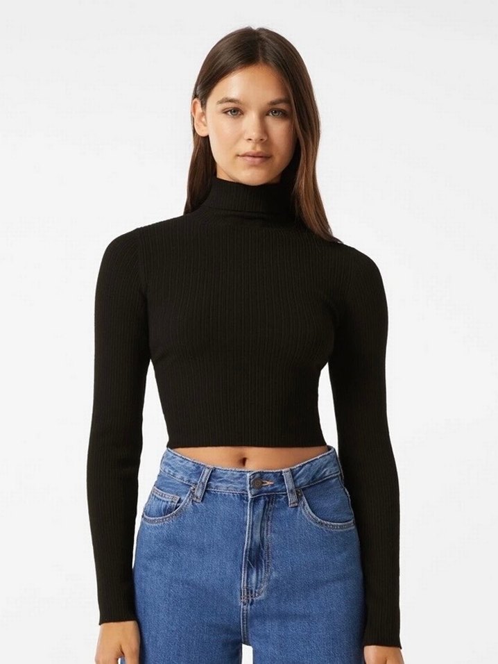 Siyah Boğazlı Fit Triko Kadın Kazak