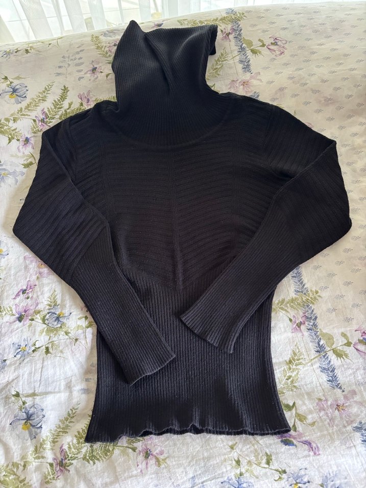 Siyah, boğazlı ve ince triko dokulu, uzun kollu, vücuda oturan kadın kazak. Rahat ve şık goth tarzıyla günlük kullanıma uygun.