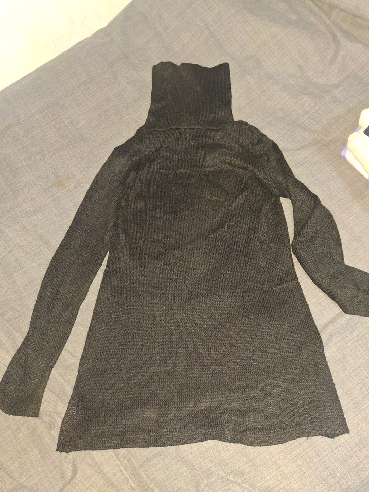 Uzun kollu, boğazlı ve vücuda oturan siyah triko kadın kazak, yumuşak sentetik kumaştan örülmüştür. Dış mekan kullanımına uygundur.