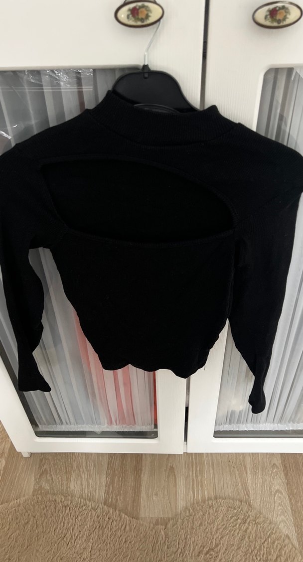 Siyah Boğazlı Kısa Kadın Kazak