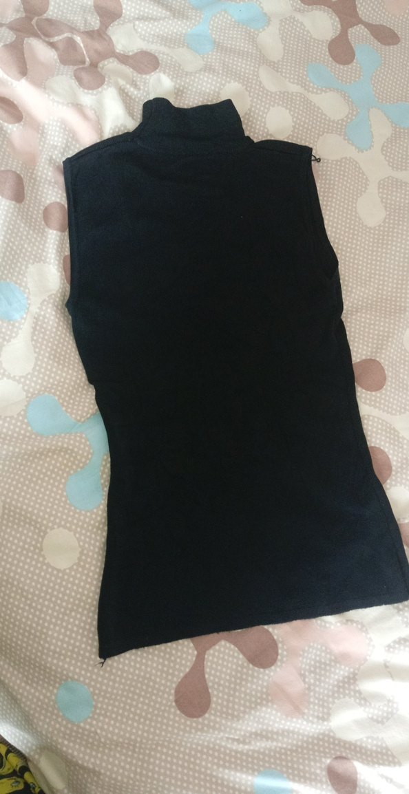 Siyah boğazlı, kolsuz, midi uzunlukta, yumuşak ve sıcak dokulu kumaştan yapılmış dar kesim kadın bluz Minimalist ve sade tarzda, günlük kullanıma uygun.
