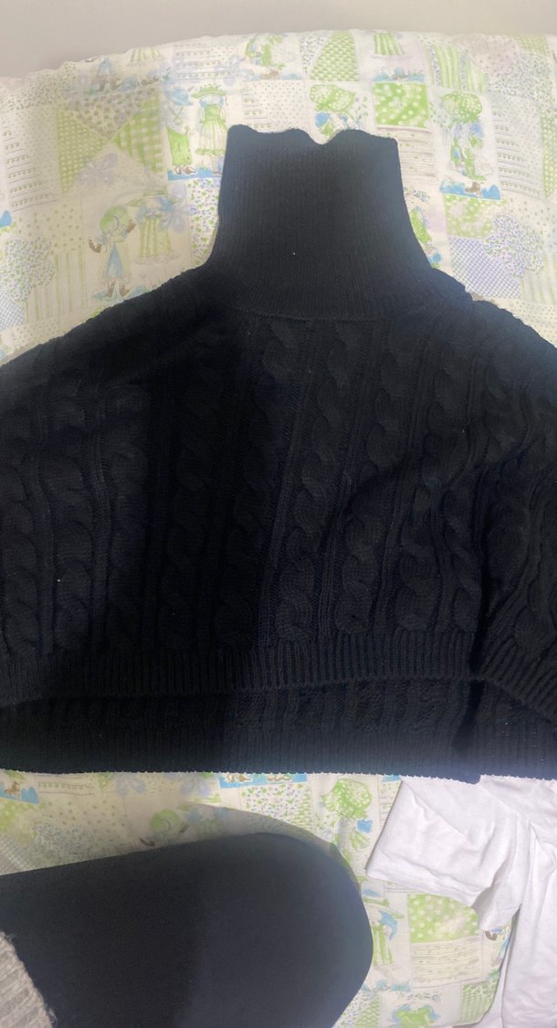 Siyah Boğazlı Örgü Kadın Crop Kazak