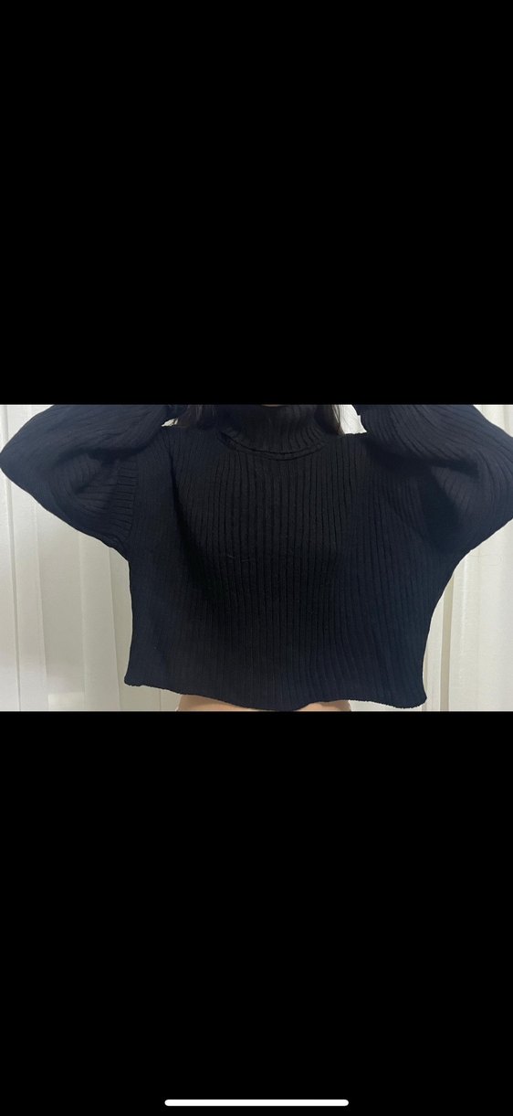 Siyah renkli, boğazlı ve uzun kollu örgü kazak, bol kesim ve midi uzunlukta, rahat sokak stili için ideal.