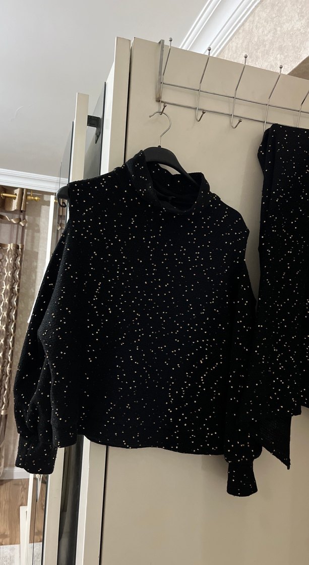 Siyah, boğazlı, uzun kollu örme triko kazak, salaş kesimiyle günlük rahat ve şık bir sokak stili sunar. Bir kere giyildi ikili takım olarak verilecektir 38 bedene de uygundur✨kalem etek ve boğazlı omuzdan dekolteli pullu takım elbise