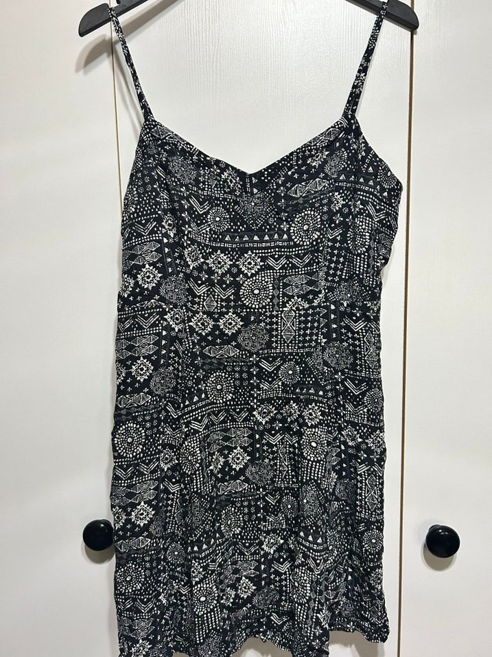 Siyah bohem desenli, dantel detaylı, ince askılı ve vücuda oturan midi elbisedir.