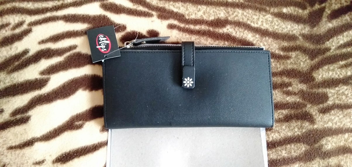 Siyah kadın cüzdanı, fermuarlı kapama ve baskılı çiçek detaylı kayışla, minimalist ve bohem tarzı yansıtıyor. Günlük kullanım için uygun.