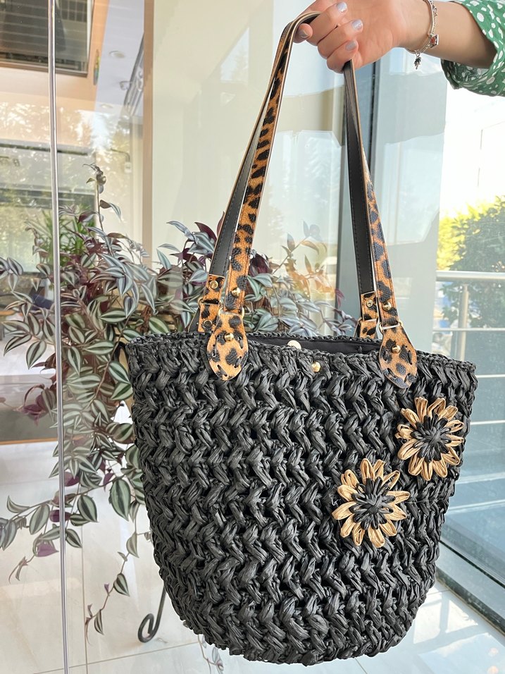 Siyah Bohem Raffıa Örgü Kadın Çanta